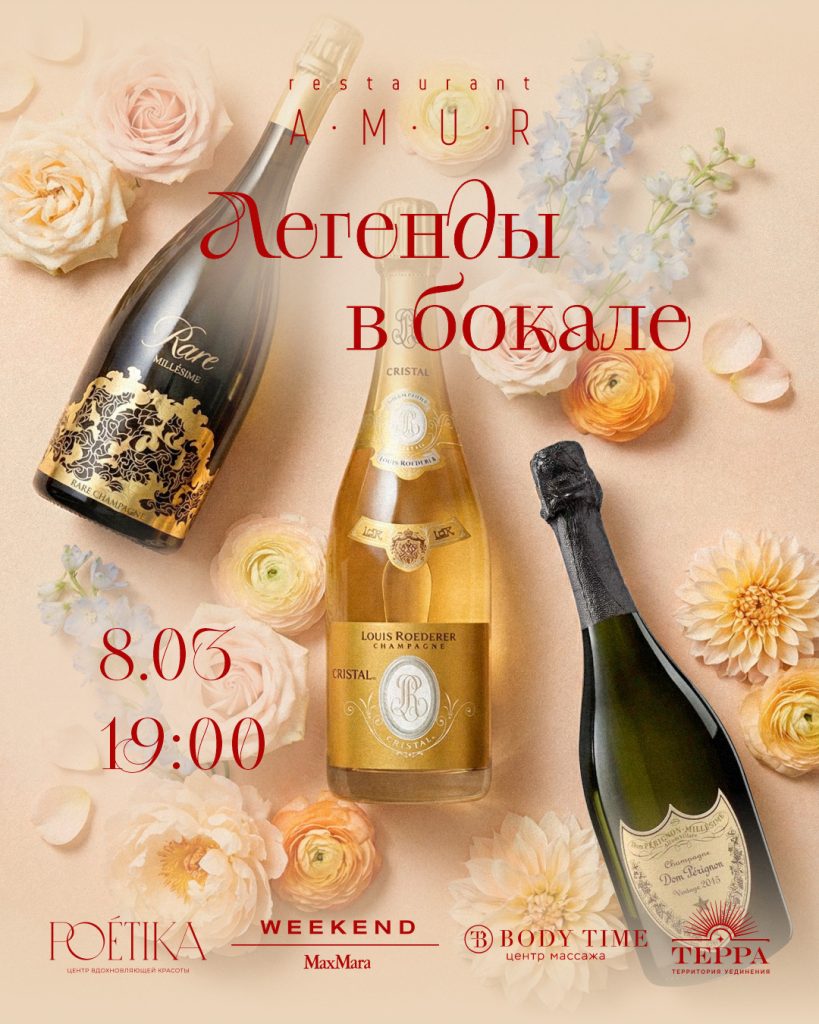 Ресторан «Амур» с гордостью представляет Вам событие, которое впервые состоится в нашем городе – эксклюзивная дегустация шампанских вин премиум-класса, приуроченная к Международному женскому дню 8 марта🌷