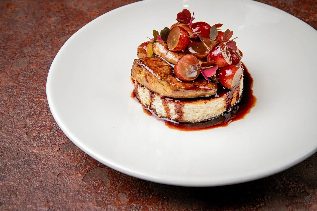 Эскалоп из Фуа-гра с виноградом и соусом из смородины