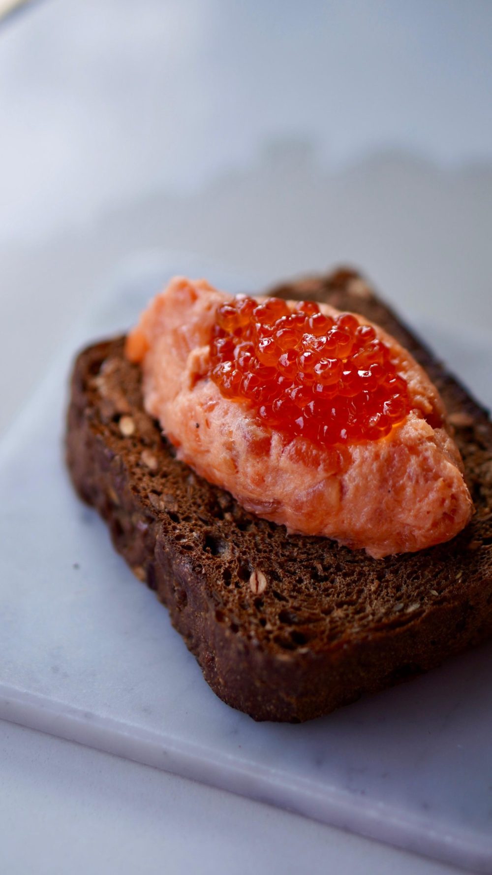 Количество товара Рийет из форели на зернистом хлебе с красной икрой