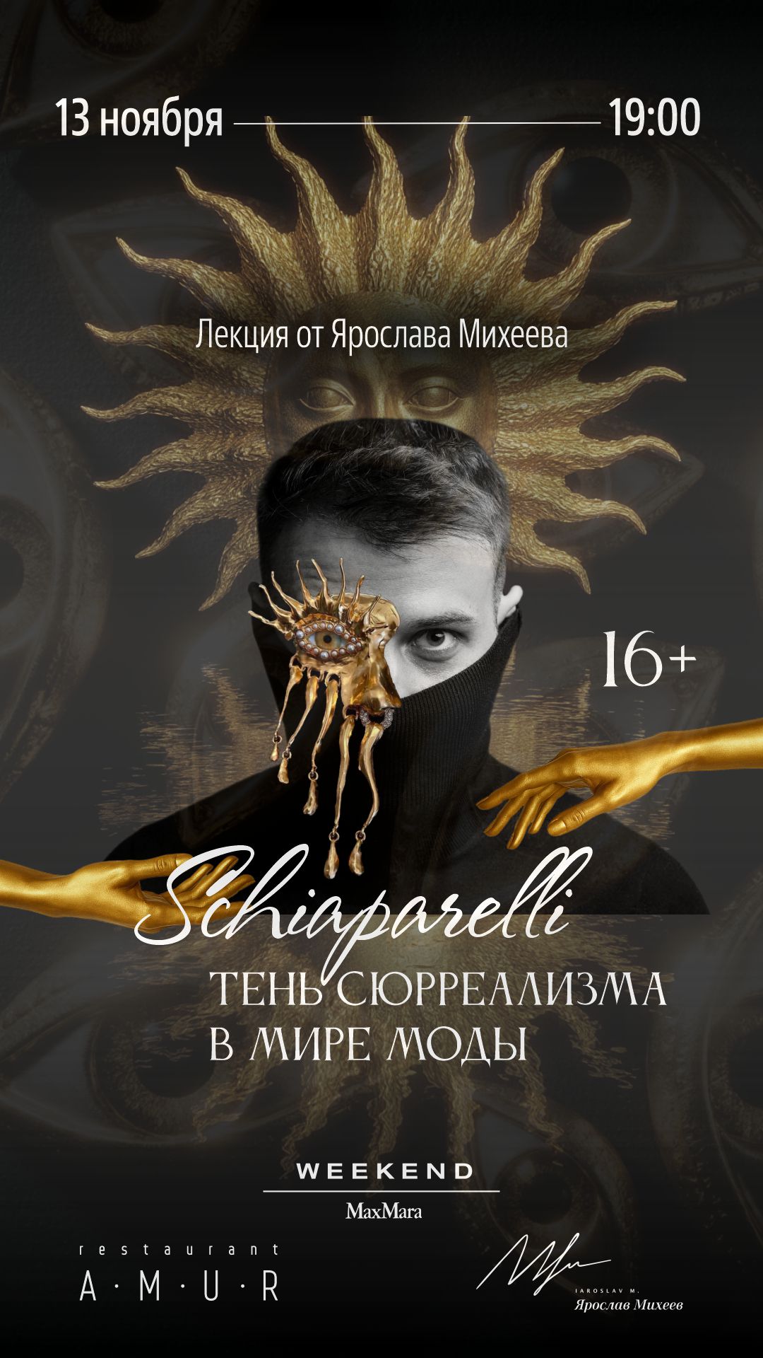 13 ноября ресторан “Амур” приглашает вас на лекцию Ярослава Михеева “Schiaparelli: Тень сюрреализма в мире моды”!