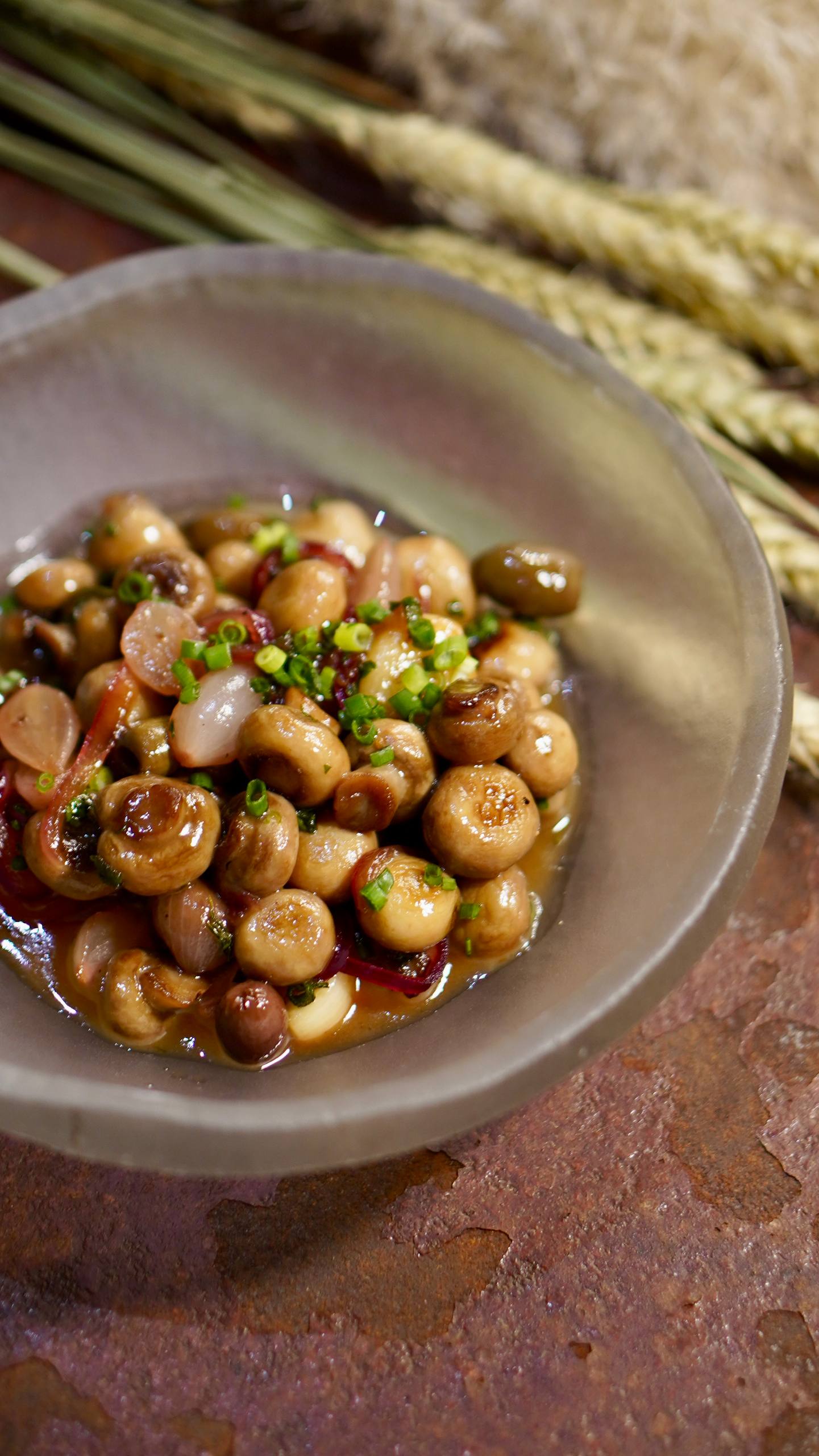 Шампиньоны с таджасскими оливками в яблочном сиропе