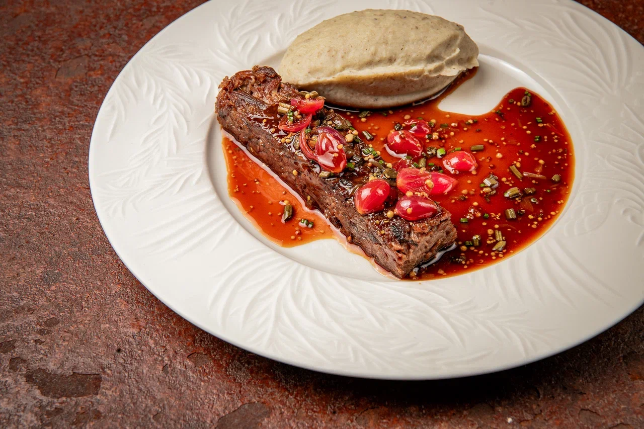 Стейк из бычьих хвостов с трюфельным пюре и демиглясом